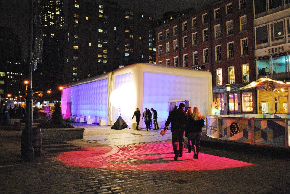 SUGARCUBE, a singular venue, inflatable pop-up art structure, and heated lounge in the South Street Seaport, was curated by 100m Records. The interior design installation from acclaimed artist Mark Gagnon served as the backdrop to an unparalleled series of cultural events that included film screenings, rock concerts, record label showcases, DJ parties, workshops, classes and more. | |||
